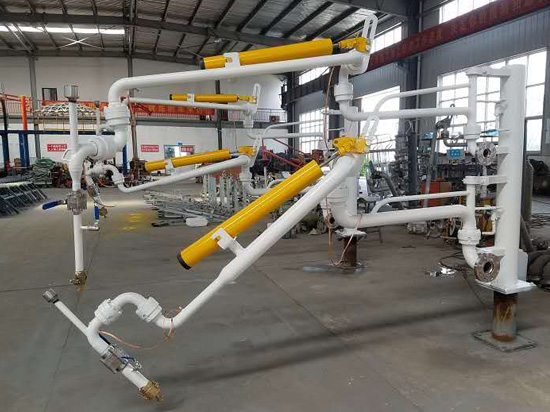 鶴管的安裝方法:發(fā)油臺與鶴管連接處配有相應(yīng)的標(biāo)準(zhǔn)法蘭,并保證基礎(chǔ)法蘭牢固可靠,法蘭盤距地面高度為2.1~2.2米,鶴管倒裝時法蘭盤距地面高度為2.7~2.8米。安裝過程中,每個法蘭面必須輕清潔干凈,有密封槽的必須用黃油將O形圈裝好后再連接在每個銷軸轉(zhuǎn)動部分及彈簧平衡器安裝使用前必須涂潤滑機(jī)油。<了解詳情>